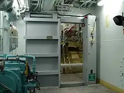 Drzwi wodoszczelne – ruchoma zasuwa w grodzi wodoszczelnej zamykająca przejście pomiędzy sąsiadującymi przedziałami wodoszczelnymi. Zamykane są zdalnie za pomocą instalacji hydraulicznej z mostku kapitańskiego oraz lokalnie przy samym przejściu. W przypadku awarii istnieje możliwość ich zamknięcia (lokalnie) przy pomocy ręcznej pompy. Są one zamykane na czas rejsu oraz w przypadku ogłoszenia alarmu (alarm wodny, pożarowy) w czasie postoju w porcie. Drzwi wodoszczelne powinny wytrzymać ciśnienie wody w przypadku zalania sąsiadującego z nimi przedziału wodoszczelnego do wysokości pokładu głównego. Podczas zamykania są w stanie zmiażdżyć i przeciąć znajdujące się w ich świetle przeszkody - np. ciało ludzkie. Specyfiką okrętów są zamykane i ryglowane ręcznie okrągłe drzwi wodoszczelne na okrętach podwodnych.