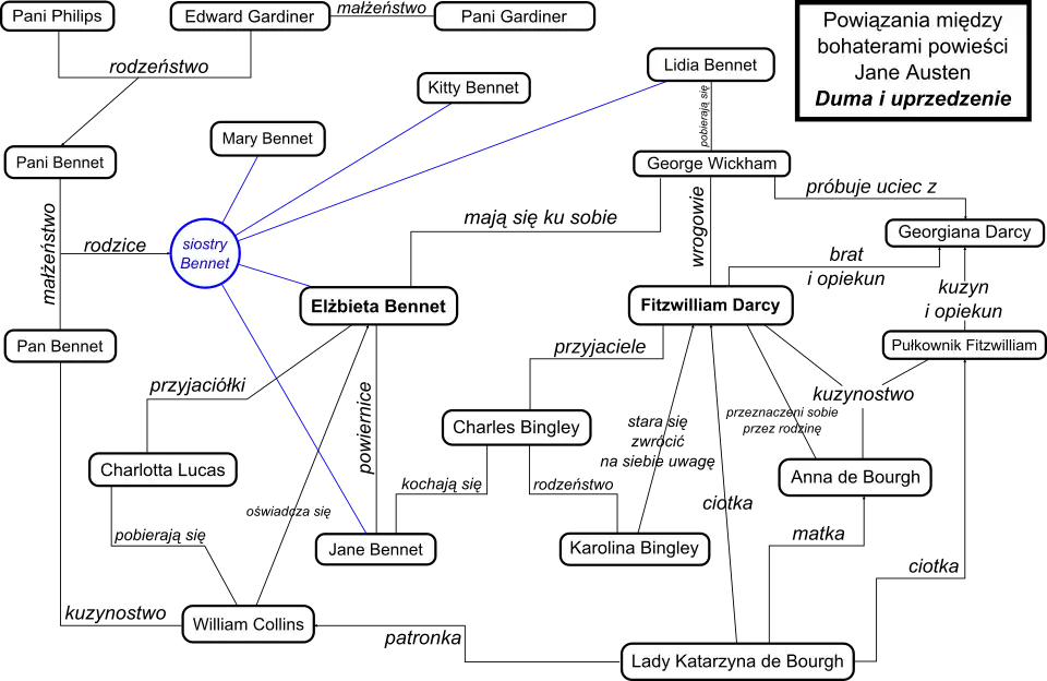 - ↑ Dochód roczny czy suma posagu panny jest u Austen istotnym elementem charakterystyki postaci, określającym po części jej społeczną pozycję.
