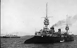 | 2 działa 194 mm w wieżach (2 × I) 6 dział 164,7 mm w wieżach (6 × I) 6 dział 63 mm (6 × I) 8 dział 47 mm (8 × I) 4 działa 37 mm rewolwerowe (2 × I) 4 wyrzutnie torped 450 mm | |