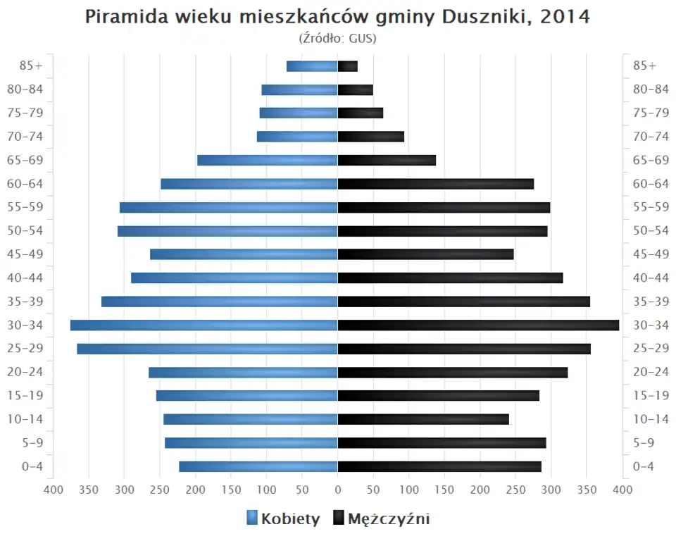 - Piramida wieku mieszkańców gminy Duszniki w 2014 roku[1].