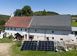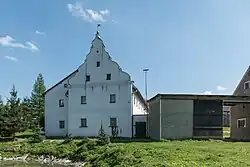 Do dworu przylegają zabudowania gospodarcze z XIX wieku, ustawione wokół prostokątnego dziedzińca[2].