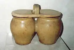 Dwojaki – podwójne naczynie gliniane z uchem, w którym dawniej donoszono na pole dwudaniowe posiłki pracującym tam cały dzień oraczom czy żniwiarzom.