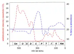 - ↑ Daniel H. Rothman. Atmospheric carbon dioxide levels for the last 500 million years. „Proceedings of the National Academy of Sciences of the United States of America”. 99 (7), s. 4167–4171, April 2, 2002. DOI: 10.1073/pnas.022055499. (ang.).