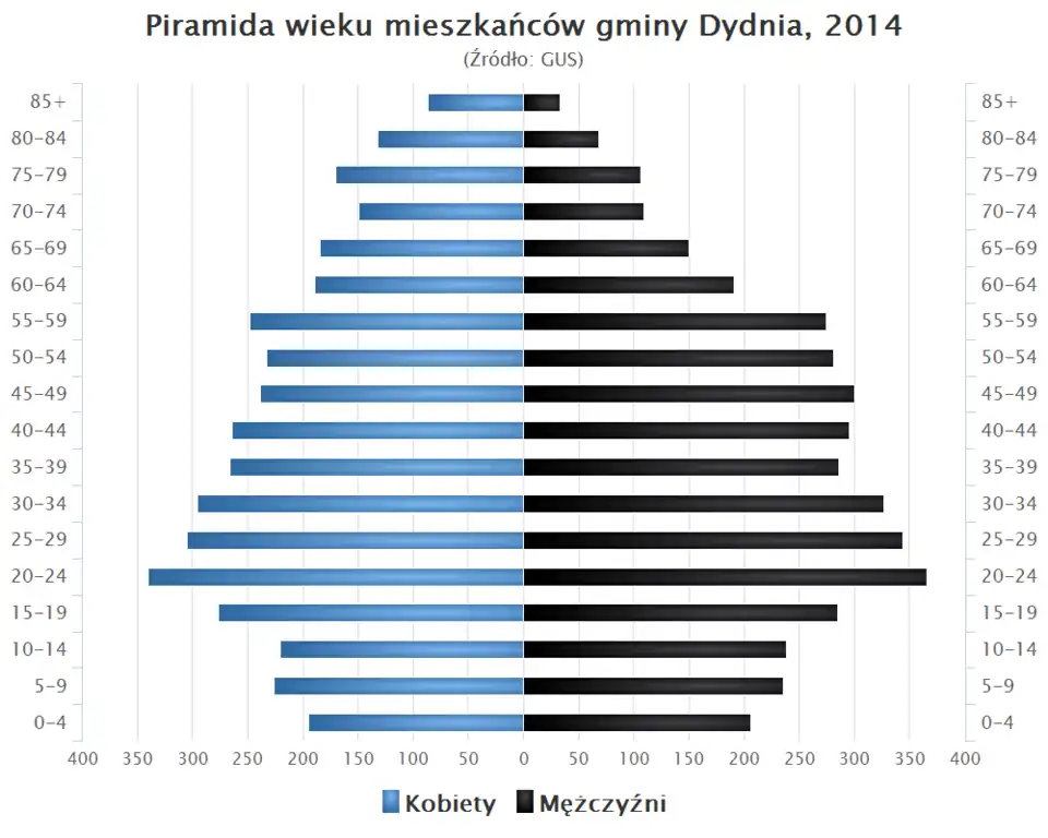 - Piramida wieku mieszkańców gminy Dydnia w 2014 roku[1].