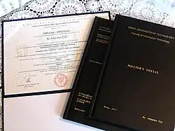Dysertacja – pisemna praca naukowa (praca dyplomowa) pisana w celu uzyskania stopnia naukowego[1][2], zazwyczaj w formie rozprawy. W Polsce napisanie i przedstawienie do recenzji dysertacji było warunkiem koniecznym otrzymania stopnia doktora i doktora habilitowanego. Wymóg ten zniesiono w 2012 roku i jest możliwe uzyskanie stopnia na podstawie wcześniejszych publikacji.