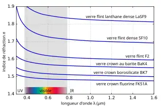 Dla typowego szkła Dla szkła flint dyspersja jest wysoka, osiągając wartość