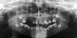 - ↑ O Carroll MK, Duncan WK, Perkins TM. Dentin dysplasia: review of the literature and a proposed subclassification based on radiographic findings. „Oral Surg Oral Med Oral Pathol”. 72. 1, s. 119-125, 1991. DOI: 10.1016/0030-4220(91)90202-N. PMID: 1891231.