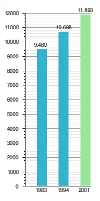 Liczba ludności mieszkańców dystryktu Baney na przestrzeni lat 1983-2001[1].
