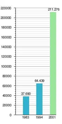 Liczba mieszkańców dystryktu Malabo na przestrzeni lat 1983-2001[1].