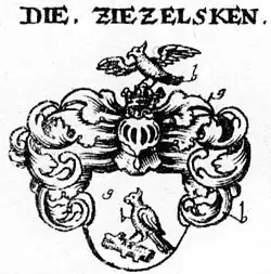 Dzięcielski (Czieczielski, Diczelski, Dietzelski, Diezelski, Diezelsky, Dischelsky, Dizelski, Dzengelski, Dzenselski, Dzentzeltzki, Dzezelski, Dzezielsi, Dzicelsky, Dziecelski, Dziecielski, Dziencielski, Dziendzielski, Dzietzeltze, Dziezelski, Dziezielski, Dzincelski, Dzincielski, Dziezelsky, Zeczelsky, Zelske, Zetzelske, Ziczelske, Ziegelske, Ziezelscke, Ziezelski, Ziezelsky, Zintzelitz, Zitzalsske, Zitzelske, Zitzelski, Zizelske, Zizelski, Züzelsky).