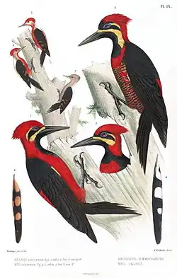 - 1 2 Denis Lepage: Crimson-bellied Woodpecker Campephilus haematogaster (von Tschudi, 1844) – synonyms. Avibase. [dostęp 2021-10-16]. (ang.).
