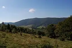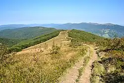 Widok na Dział i pasmo graniczne z Połoniny Wetlińskiej | |