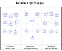 Wyróżnia się trzy główne metody prowadzenia działań opóźniających: opóźnianie ciągłe, opóźnianie przemienne i metodę kombinowaną[9].