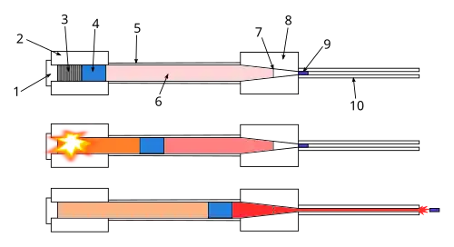 - ↑ T. W. Alger, R. G. Finucane, J. P. Hall, B. M. Penetrante, T. M. Uphaus: Direct Energy Exchange Enhancement in Distributed Injection Light Gas Launchers, Lawrence Livermore National Laboratory, 2000 (e-reports, llnl.gov [dostęp 2012-04-27])