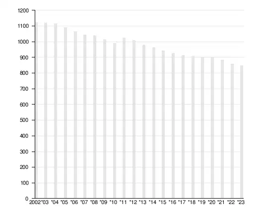Według danych z 31 grudnia 2010 miasto miało 991 mieszkańców, a w 2022 - 868 mieszkańców.[2]