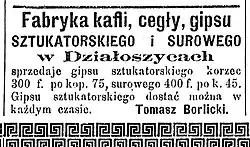 - ↑ Karina Berkowicz, Borliccy–rodzinna firma majstrów zduńskich z Działoszyc (1859–1918), [w:] „Świętokrzyskie - Środowisko, Dziedzictwo Kulturowe, Edukacja Regionalna”, t. 30(34), s.100-103, Kielce 2022, ISSN 1895-2895..