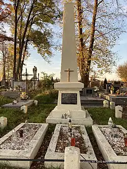- ↑ Narodowy Instytut Dziedzictwa: mogiła Stefana Stakiewicza[sic!, Wincentego Robaka i Wojciecha Pawęzowaskiego[sic!] z I w. św.]. Zabytek.pl. [dostęp 2023-02-17].