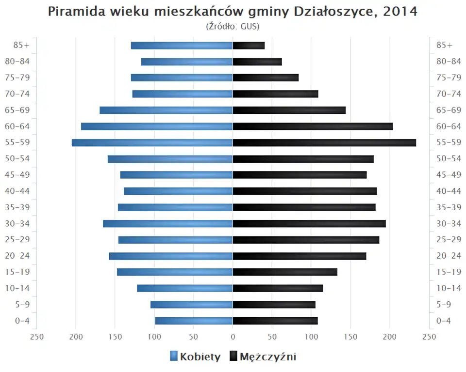 - Piramida wieku mieszkańców gminy Działoszyce w 2014 roku[6].