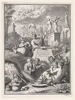 - Sympozjum (Symposion) – humorystyczne naśladowanie „Uczty” Platona i Ksenofonta, a zarazem zjadliwa satyra na filozofię spekulatywną i na samych filozofów.