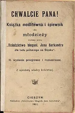 - Weronika Pawłowicz, „Dziedzictwo błogosławionego Jana Sarkandra” i jego działalność wydawnicza w latach 1901-1922, [w:] Książka polska na Śląsku w latach 1900-1922. Zarys problematyki, red. Maria Pawłowicz, Katowice 1994, s. 190-203