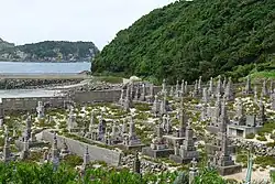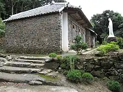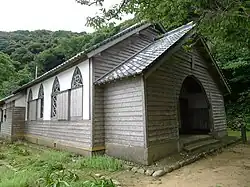 | Ruiny wsi na wyspie Nozaki | W XIX wieku osiedlili się na niej „ukryci chrześcijanie”, pochodzący z regionu Sotome. Zanim przybyli, jedynymi mieszkańcami wyspy byli kapłani shintō. Migranci dokonali wyboru tego miejsca, aby ukrywać swoją wiarę w tajemnicy, pod przykryciem przynależności do chramu. Po zniesieniu zakazu chrześcijaństwa dołączyli do Kościoła katolickiego i zbudowali nowe kościoły w dwóch wioskach w centralnej i południowej części wyspy. | |