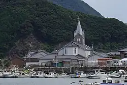 | Wieś Ōno w Sotome | Miejscowi „ukryci chrześcijanie” przetrwali, udając na zewnątrz wyznawców shintō i buddyzmu. Kiedy skończyły się prześladowania, wybudowali tu kościół. | |