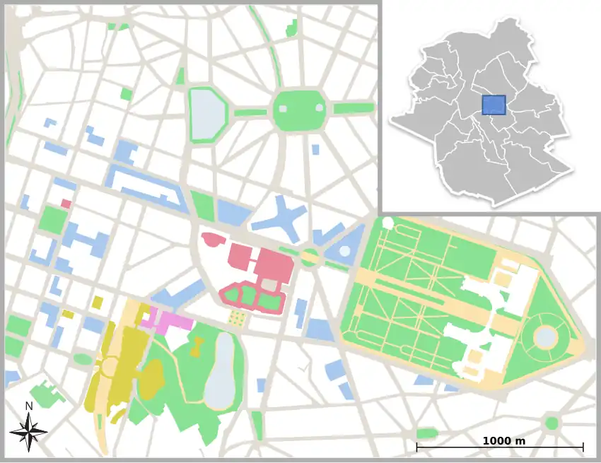 Teren ten odpowiada trójkątowi między Parkiem Brukselskim, Parkiem Cinquantenaire i Parkiem Leopolda. Siedziby Komisji Europejskiej i Rady Europejskiej znajdują się w samym sercu tego obszaru, w pobliżu stacji Schuman przy rondzie Schuman na Rue de la Loi. Parlament Europejski znajduje się nad stacją Bruksela-Luksemburg, obok Placu Luksemburga.