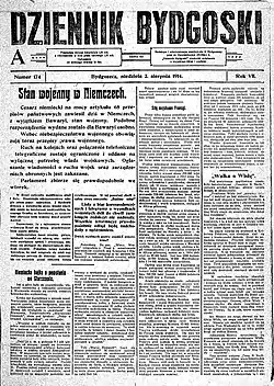 ![]() Strona tytułowa z 21 stycznia 1920 r. witająca Wojsko Polskie wkraczające do Bydgoszczy po 108 latach zaboru pruskiego | |
