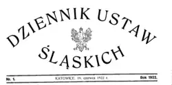 - ↑ art. 1 rozporządzenia z dnia 17 czerwca 1922 r. w przedmiocie wydawania Dziennika Ustaw Śląskich (Dz. Ust. Śl. Nr 1 poz. 1)