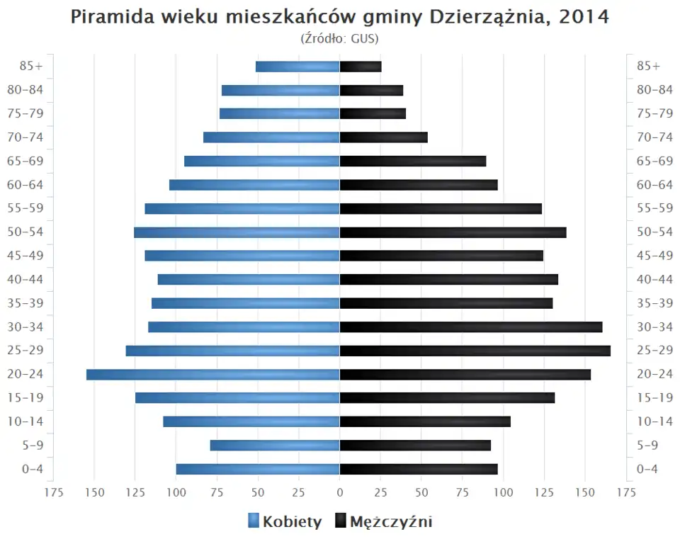 - Piramida wieku mieszkańców gminy Dzierzążnia w 2014 roku[6].