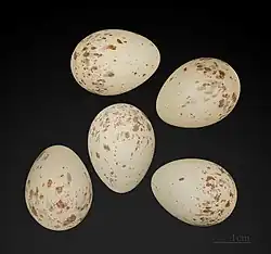 W ciągu roku wyprowadza jeden lęg, składając w kwietniu (na południu) – czerwcu (na północy) 5 lub częściej 6 subeliptycznych, jednobarwnych jaj w kolorze od żółtawoczerwonawego, przez żółtozielonkawy, zielonooliwkowy (najczęściej) po zielonobrązowy i brązowy. Są ciemno nakrapiane. Ich rozmiar i ubarwienie przypominają jaja dzierzby gąsiorka.