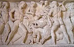 Polowanie na dzika, wyrządzającego olbrzymie szkody, urządził Meleager. Zaprosił na nie wszystkich znanych bohaterów – brali w nim udział m.in.: