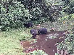 Dzikacz leśny, jak i inne świniowate[16], lubi taplać się w błocie, czemu poświecą na dobę minimum godzinę[17].