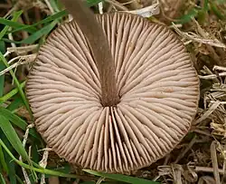 W liczbie 20–50, z międzyblaszkami L = 1-5(–7)[6], rzadkie, dość szerokie, prawie wolne, początkowo jasnokremowe, potem różowe, w końcu różowobrązowe. Ostrza łagodnie nacinane[5].