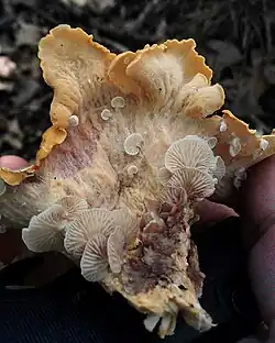 ![]() Dzwonkówka pasożytnicza na owocniku innego grzyba | |