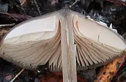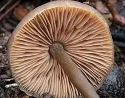 W liczbie 20–30, z międzyblaszkami (l = 1–7), średniogęste, przyrośnięte lub wykrojone. Początkowo bladobrązowe, potem różowe, w końcu brązowo-różowe. Ostrza równe, tej samej barwy[4].
