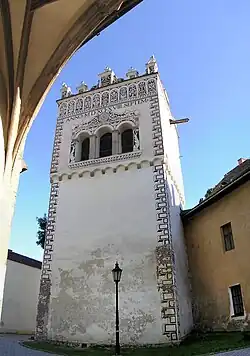 Pierwotną dzwonnicę wzniesiono jeszcze w XV w. W latach 1586–1591 została ona przebudowana w stylu renesansowym. Przebudowę wykonał mistrz Ulrich Materer z Kieżmarku, który kilka lat później (w1598 r.) pracował przy przebudowie dzwonnicy w Spiskiej Sobocie. Autorem sgraffitowej wyzdoby wieży był majster, upamiętniony inicjałami H.B.