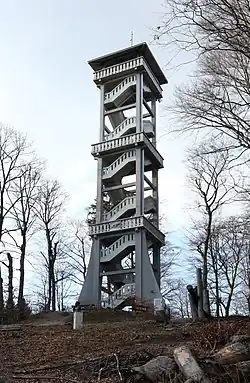 - Wieża widokowa: Budowę obecnej wieży widokowej na wzgórzu Ludwigshöherozpoczęto w 1914 r. w miejscu, gdzie od 1873 r. drewniana konstrukcja. Do czasu przerwania robót budowlanych z powodu I wojny światowej, zbudowano dwie kondygnacje. W swojej dzisiejszej formie, wieża została otwarta 1.05.1915 r. Betonowa konstrukcja wykonana przez firmę Hochtief ma wysokość 35 m i była od czasu uruchomienia wielokrotnie konserwowana. Z wieży możemy obserwować las (Ebersberger Forst), miasta Ebersberg i Grafing, a przy dobrej pogodzie panoramę Alp. Od 2014 r. po wpłacie darowizny na fundusz kultury Zarządu Miasta Ebersberg, można oświetlić wieżę wybranym przez siebie kolorem od zmierzchu do północy[12].