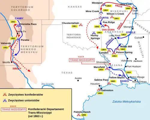 Dzięki wyparciu wroga Smith miał wolną rękę by wysłać posiłki do wschodniego Missisipi, jednakże, jak zdarzyło się to wcześniej przy okazji Vicksburga, marynarka wojenna Unii kontrolowała rzekę, uniemożliwiając jego zamysły. Zamiast tego posłał gen. dyw. Sterlinga Price’a z całą dostępną kawalerią na, jak się później okazało nieudaną, inwazję na Missouri[11]. Od tego momentu wojna na zachodzie przerodziła się w szereg nieznaczących najazdów i walki partyzanckiej[11]. 26 maja 1864, pełny już wtedy generał Smith (d 19 lutego)[6] poddał swój departament i zostawiwszy niewielkie siły zbiegł na Kubę przez Galveston i Meksyk, obawiając się kary za zdradę[12]. 14 listopada 1865 roku, amnestionowany powrócił[3].