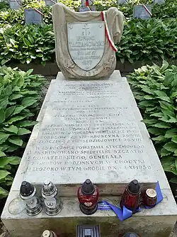 Zmarł 14 września 1879 pochowany w Choryni. 1 listopada 1938 jego szczątki uroczyście przewiezione zostały przez Poznań[3] i Kalisz[4], a dnia następnego do Warszawy i pochowane na Cmentarzu Wojskowym na Powązkach (kwatera C13-1-9)[5].