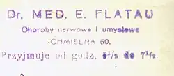 - ↑ ogłoszenie. „Kurjer Warszawski”, s. 11, 8 lutego 1899. Warszawa. Cytat: Dr. med. Edward Flatau. Choroby nerwowe i umysłowe. Marszałkowska 150..