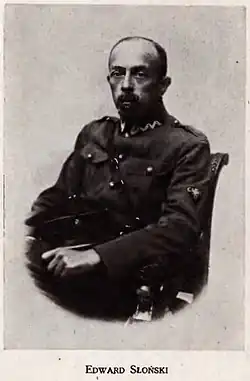 - ↑ Cmentarz Stare Powązki: EDWARD SŁOŃSKI, [w:] Warszawskie Zabytkowe Pomniki Nagrobne [dostęp 2020-04-15].