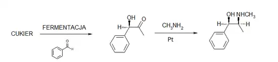 Komercyjnie dostępna efedryna syntezowana jest jedną z dwóch poniższych metod[10][11]: