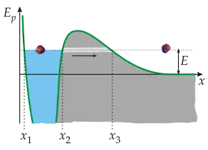 Cząstkę taką można traktować jak piłkę toczącą się wewnątrz dołka. Piłka będzie wtaczać się na ściankę dołka tylko do momentu, w którym straci całą energię kinetyczną.
