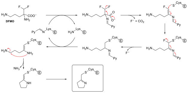 Chemiczny mechanizm nieodwracalnej inhibicji dekarboksylazy ornityny przez eflornityne