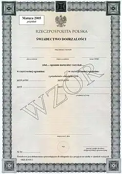 W Polsce egzamin dojrzałości wprowadzono w 1812 w Księstwie Warszawskim w szkołach departamentowych[2]. W 2005 egzamin ten został zastąpiony przez egzamin maturalny.