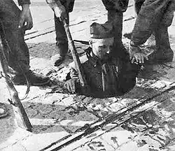 ![]() Jeden z żołnierzy AK schwytanych w okolicach ulicy Dworkowej | |