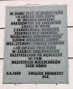 - ↑ W kamienicy drukowane było pismo „Szaniec”, będące oficjalnym organem NSZ.