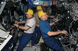 ![]() Od lewej: Clayton Anderson, Fiodor Jurczichin i Oleg Kotow | |