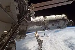 Końcówkę ramienia robotycznego, nazwaną Dextre, dostarczono na stację w częściach. Aż trzy spacery kosmiczne były potrzebne do zamontowania całej końcówki. Dextre jest wyposażony w dwoje ramion oraz dwie ręce i ma zajmować się naprawami, które dotychczas były wykonywane przez astronautów podczas EVA.
